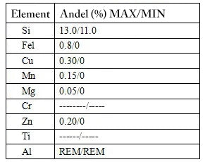 - Rekommenderas för lödning av aluminiumlegeringar: 1060, 1350, 3003, 3004, 3005, 5005, 5050, 6053, 6061, 6951, 7005 och gjutna legeringar 710.0 och 711.0