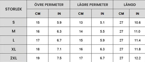 Storlek (cm/tum): S-2XL.