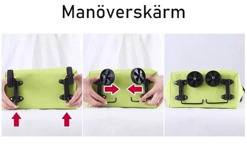 En shoppingväska med hjul som går att fälla ihop så den tar liten plats i skåp etc. Den kan användas dagligen för matinköp och reseshopping mm.